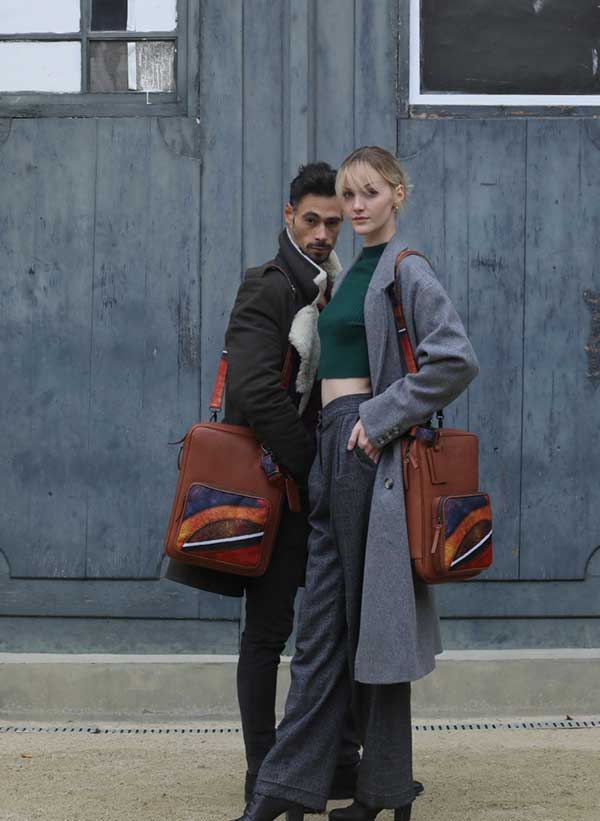 A leur tour, ils ont inspiré la création d’ un sac au design unique avec intégration de détails de ses tableaux. La rencontre de la création artistique et de la maroquinerie a donné naissance à L’EPOQUEBAG.